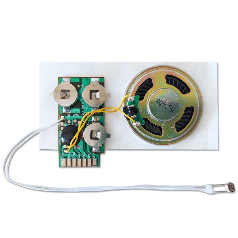 Музыкальный модуль с датчиком света позволяет самостоятельно записывать небольшое звуковое сообщение через программатор (одно или несколько сообщений, общей длительностью не более 165сек.).
