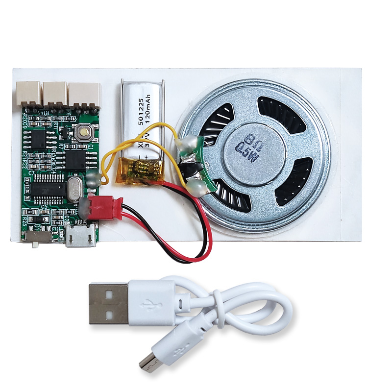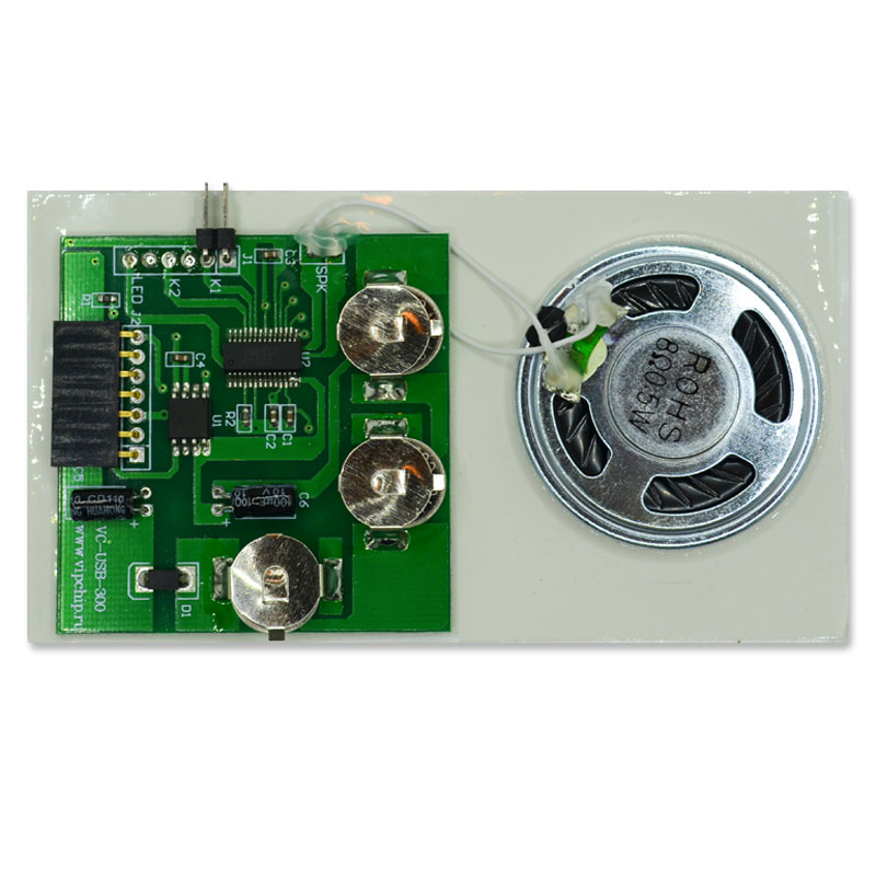 Музыкальный перезаписываемый модуль позволяет самостоятельно записывать аудиоролик через USB (одно или несколько сообщений).