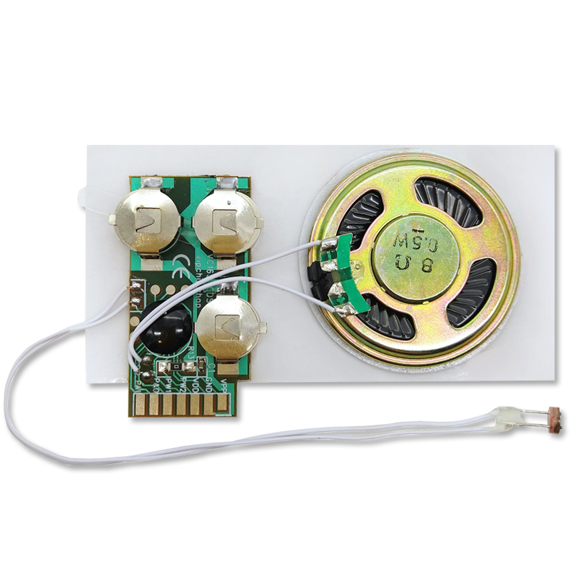 Музыкальный модуль с датчиком света позволяет самостоятельно записывать аудиоролик через программатор (одно или несколько сообщений, общей длительностью не более 160сек.).