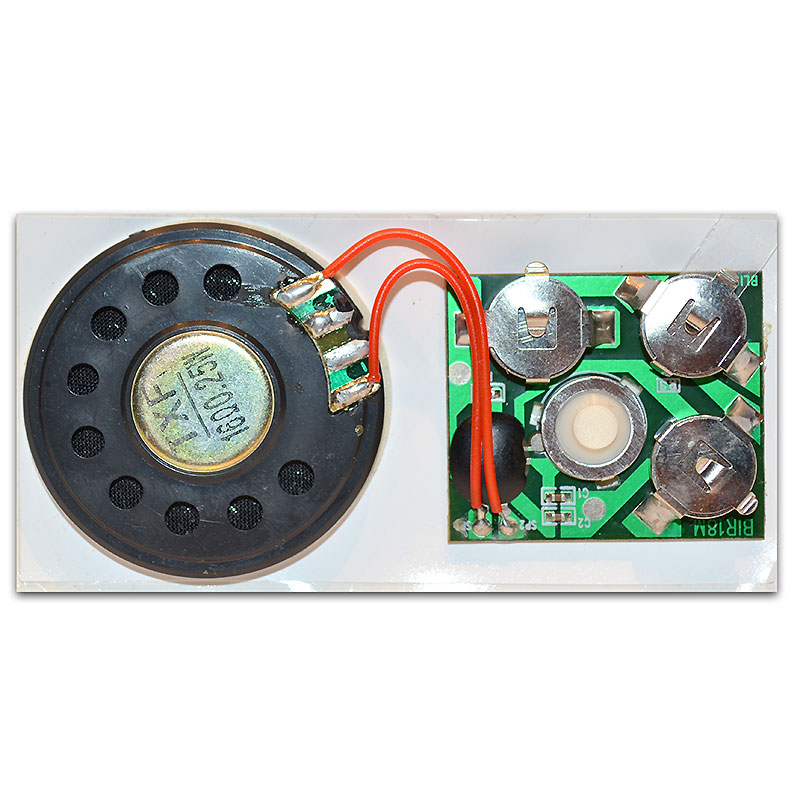 Музыкальный перезаписываемый модуль для игрушки, активация при нажатии на кнопку на корпусе модуля.