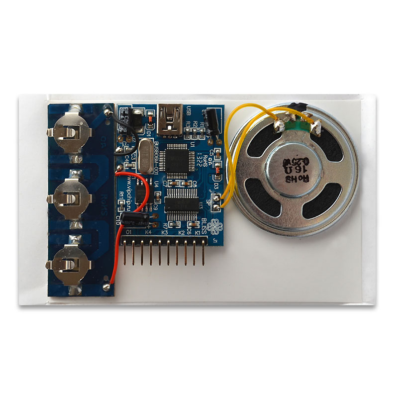 Музыкальный перезаписываемый модуль позволяет самостоятельно записывать аудиоролик через USB (одно или несколько сообщений).