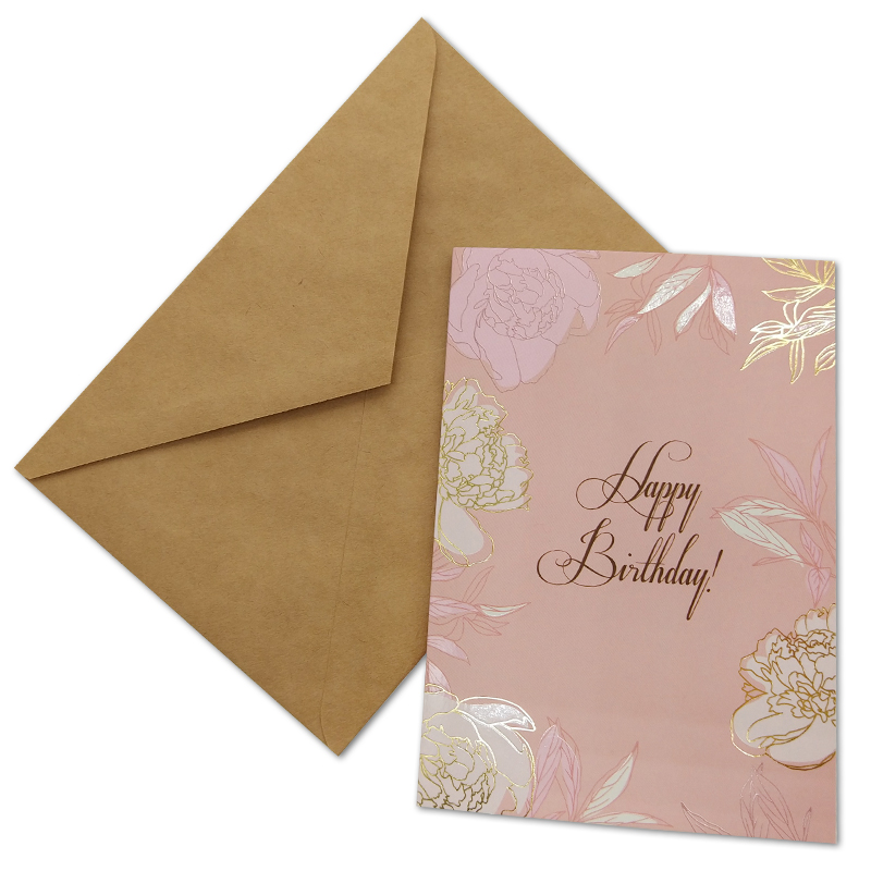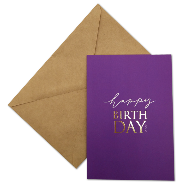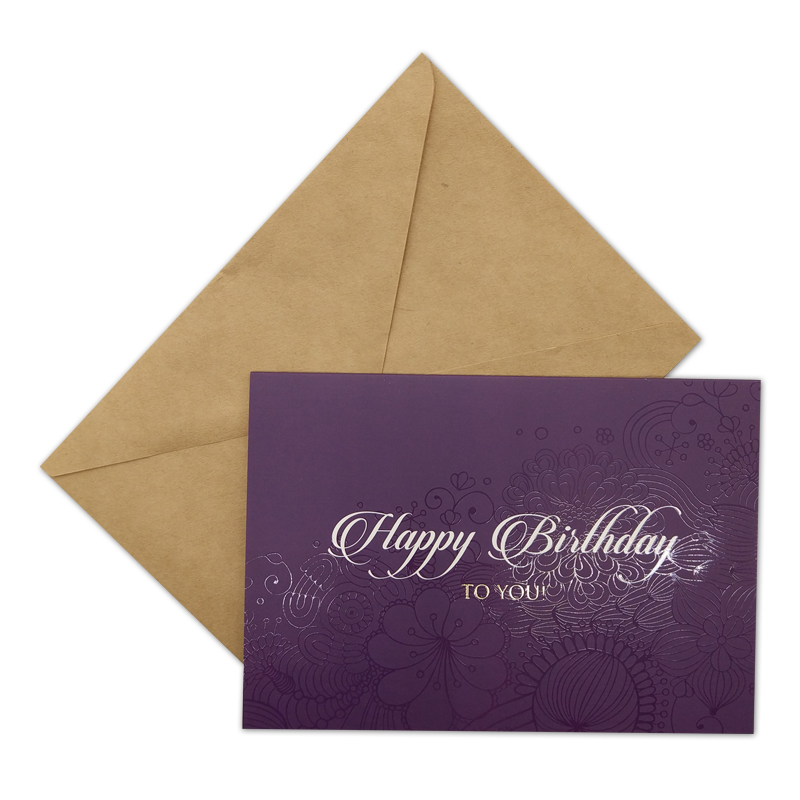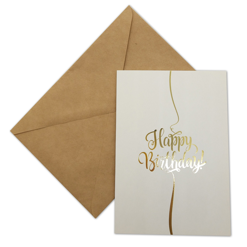 Музыкальная открытка с печатью 'Happy Birthday' в крафтовом конверте